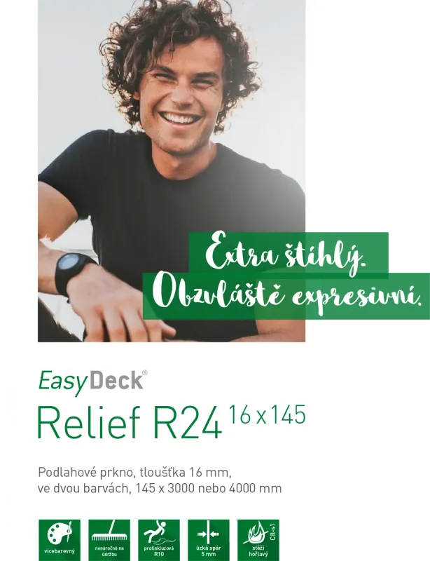 Rozmanité, stále znovu překvapující – stejně jako příroda – to jsou palubky EasyDeck®. Teplé, decentní barvy vytvářejí jedinečný charakter pohody a rozmanité struktury přinášejí na Vaši terasu živost a autentické detaily. Trvanlivý přírodní dřevěný materiál, odolný a silný proti venkovním vlivům, dlouhodobě zvyšuje hodnotu Vaší terasy až do doby, kdy je vrácen do výrobního procesu a začne jeho nový životní cyklus.