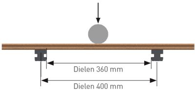 * 3.200 N entspricht ≈ 320 kg/Brett bei einem Maximalabstand der Unterkonstruktion von 400 mm.