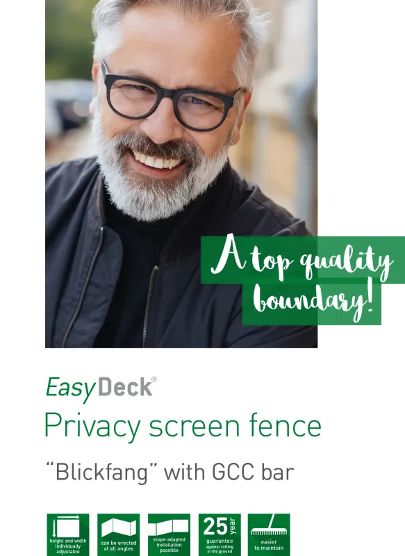 Successfully enjoy a degree of privacy and emphasize features with the “Blickfang” privacy screen fence. Its unusual appearance with marbled, corrugated panels immediately catches the eye. The material is colour-resistant and dirt-resistant. The panels almost clean themselves thanks to the vertical position and weathering. Doors and gates can also be suitably integrated and gradients as well as all types of angles can be tackled without any problems whatsoever. Our posts are also extremely durable – we provide you with a 25-year guarantee against rotting in the ground. In short: The perfect boundary option for your garden!