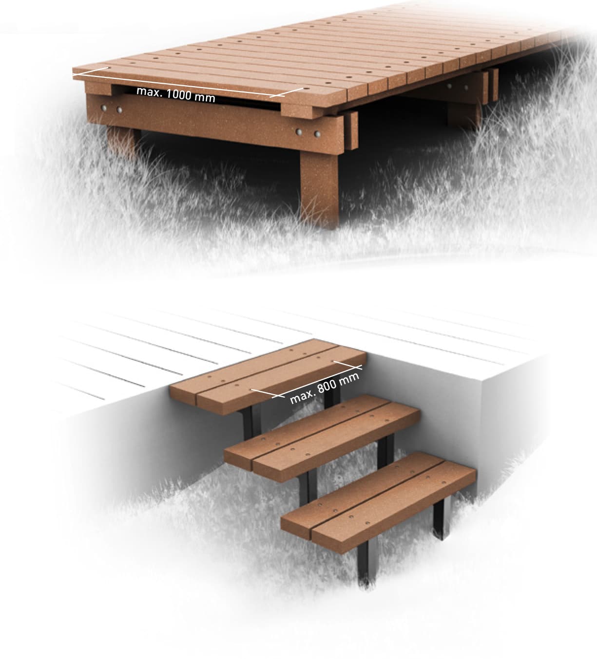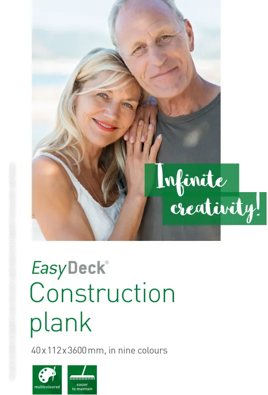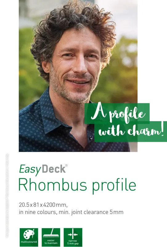 The new EasyDeck® construction timber range is made for all kinds of ideas, and captivates the imagination with its great flexibility. Numerous outdoor designs can be created using the enclosed rhombus profile and the construction plank.