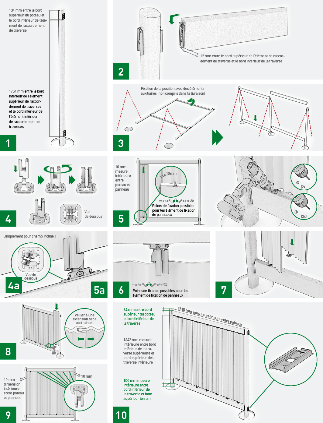 Qté nécessaire : 14 éléments de fixation de panneau par champ (avec