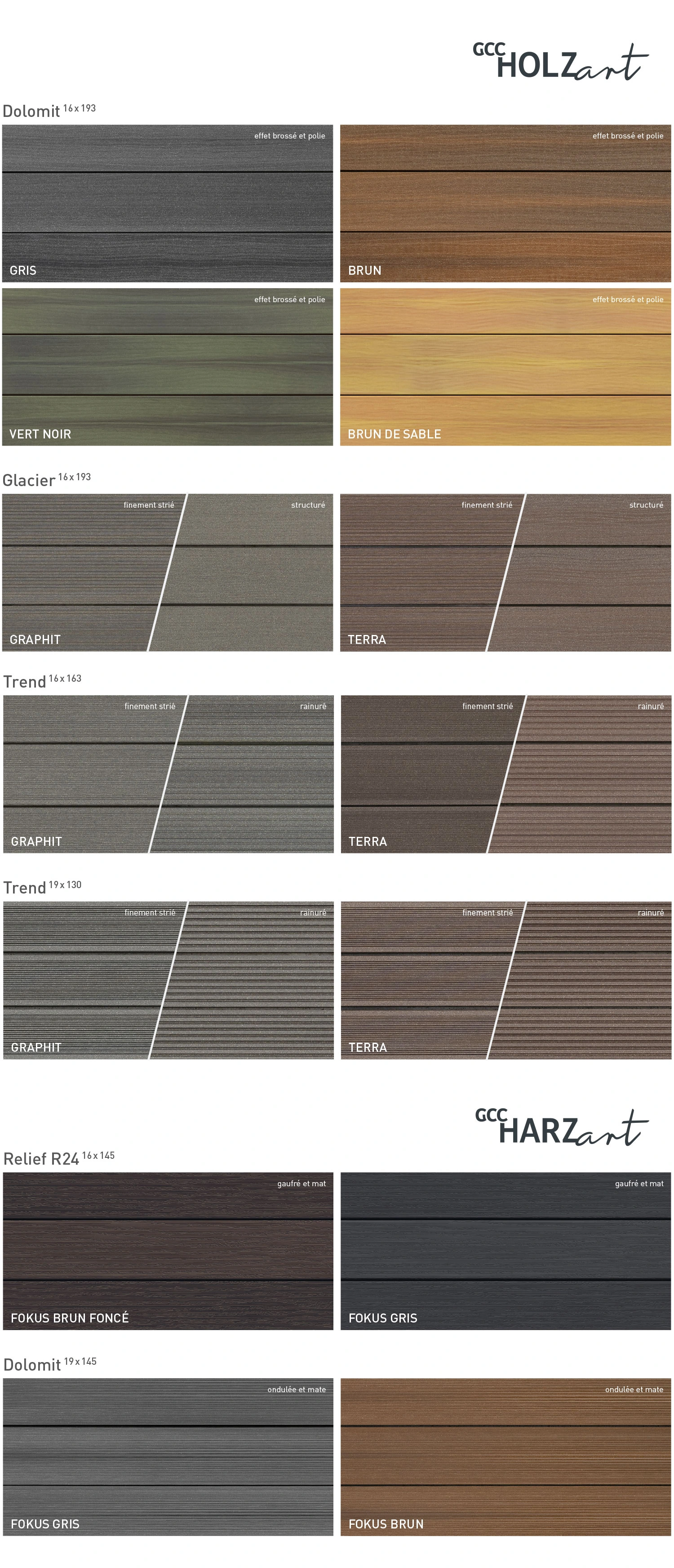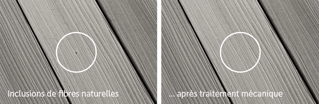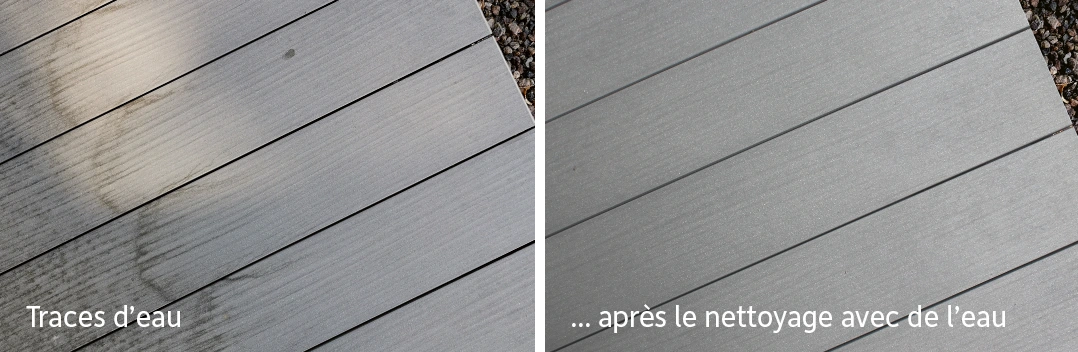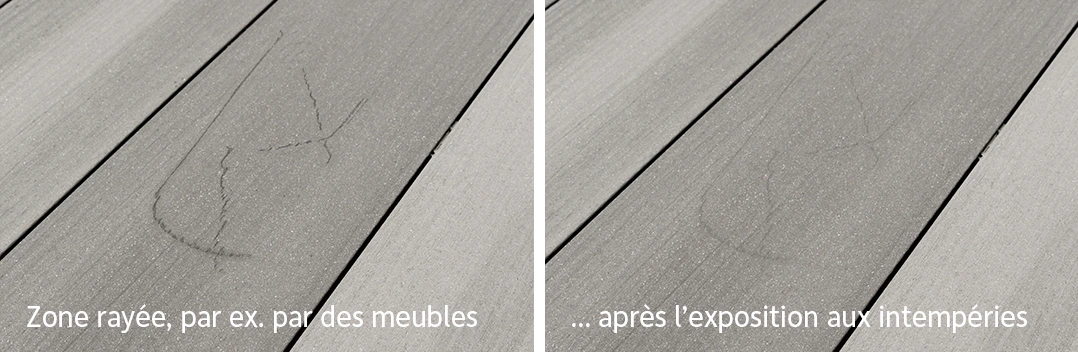 Ne pas utiliser de poudre à récurer ou de grattoirs GCC/à récurer sur les lames de terrasse GCC HARZart dont la surface est gaufrée ou mate !