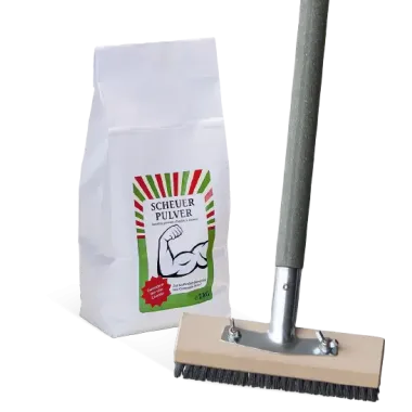 Pour les taches très tenaces sur les planches en GCC HOLZart (par exemple Glacier, Trend ou Dolomit16x193), vous pouvez également utiliser notre poudre à récurer avec la brosse à récurer GCC (brosse à récurer en corindon). Elle est exempte d‘agents tensioactifs et d‘autres produits chimiques, de sorte qu‘il n‘y a aucun risque de contamination des eaux souterraines. 2 kg de poudre à récurer suffisent pour une surface d‘environ 20 m2.Pour ce faire, répartissez la poudre uniformément sur le pont préalablement nettoyé et mouillé avec GCC Pure Wash. Travaillez et frottez avec de l‘eau claire et une brosse GCC EasyDeck® (brosse en corindon). Rincer ensuite abondamment à l‘eau et décaper à l‘aide d‘une raclette. Répéter l‘application si nécessaire. Ne pas traiter les surfaces sensibles ou les masquer au préalable.