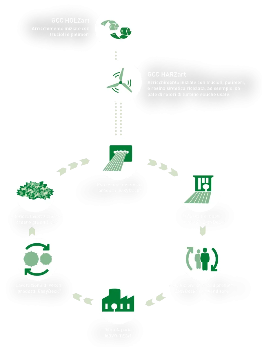 Unisciti a noi nel plasmare un futuro degno di essere vissuto per le generazioni future e restituisci i tuoi prodotti EasyDeck® al termine del loro ciclo di vita a un rivenditore di raccolta vicino a te.