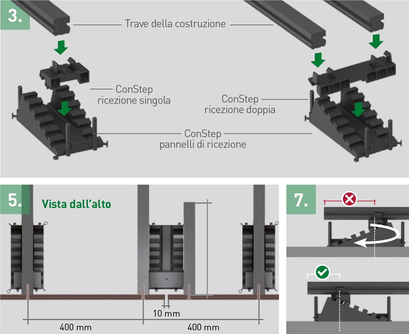 Posizionare nella fila successiva la piastra ConStep con ricezione singola con una distanza di massimo 400 mm.