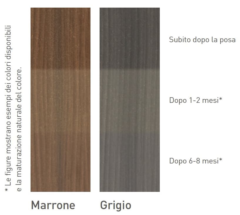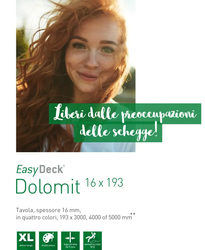 Apprezzate l'aspetto estetico del legno e la sfumatura cromatica unica che questo prodotto naturale è in grado di offrire? Allora il nostro listello Dolomit 16x193 è la scelta giusta per voi! La superficie strutturata e levigata e il delicato gioco di colori garantiscono un risultato armonioso. Date un tocco di legno al vostro terrazzo e ai vostri piedi.
